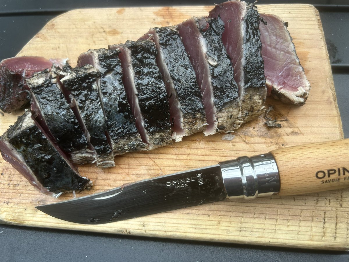 他の写真は後程あげるけどこれは格別! 高知といえばかつおのたたき!! #キャンプdeたたき #かつおのたたき #高知県 #嶺北 #大豊町 #吉野川水系 さぁ雨降る前に撤収しようか pic.x.com/yDYUhVv66S