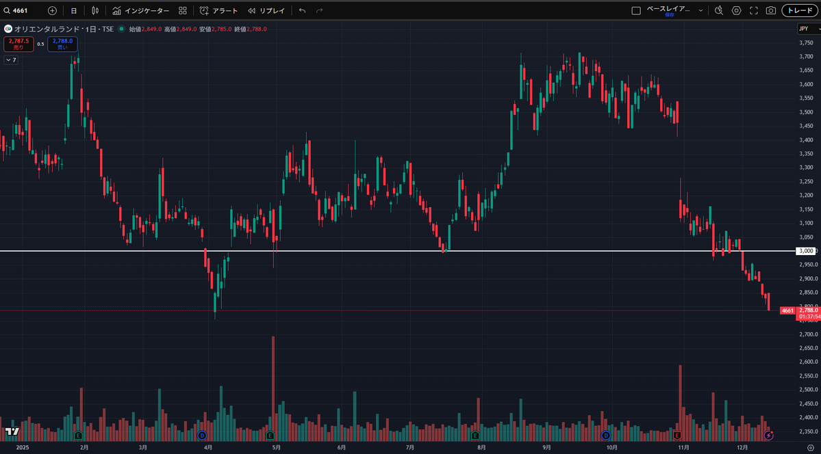 オリエンタルランドが年初来安値を更新 どんどん下がっていきますね めずらしい光景ですがそれが現実 まだPER40.3倍か 意外と下がってないですね 今はどんどん掘ってもらいましょう いつか買ういい時期が来ると思います #ディズニーランド #ミッキーマウス #オリエンタルランド #がんばれ pic.x.com/WdzbH1LeSG x.com/invprog/status…