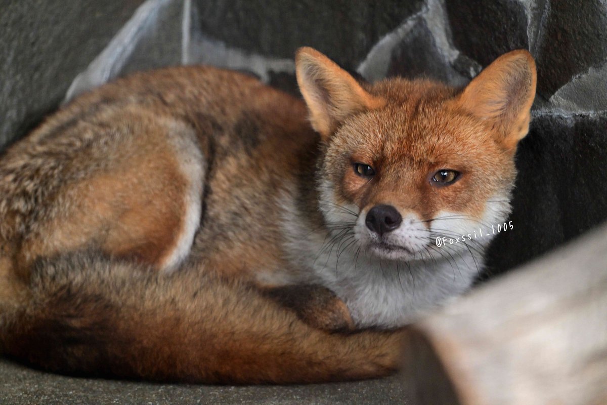 【E:ご当地こんこん】 まどろみナルトくん🦊🍥💤 (徳山動物園 ナルト♂ ※2024年 死去) さつえいび:2022年5月7日 #徳山動物園 #きつね #ホンドギツネ pic.x.com/6AA1jRehzU