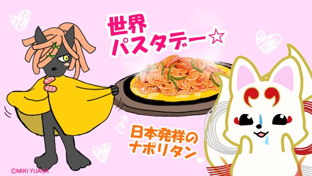 【10月25日 世界パスタデー】 1995年10月25日にイタリアで「第一回 世界パスタ会議」 が開催されたことにちなんで、国際デーとして制定されたよ♬ ナポリタンは日本発祥🍝 東海地方のナポリタンは、鉄板の上に 卵が敷いてあるのが特徴だよ🍳 #眷属 #八百万の神々 #きつね pic.x.com/8hnZbyH0Ry