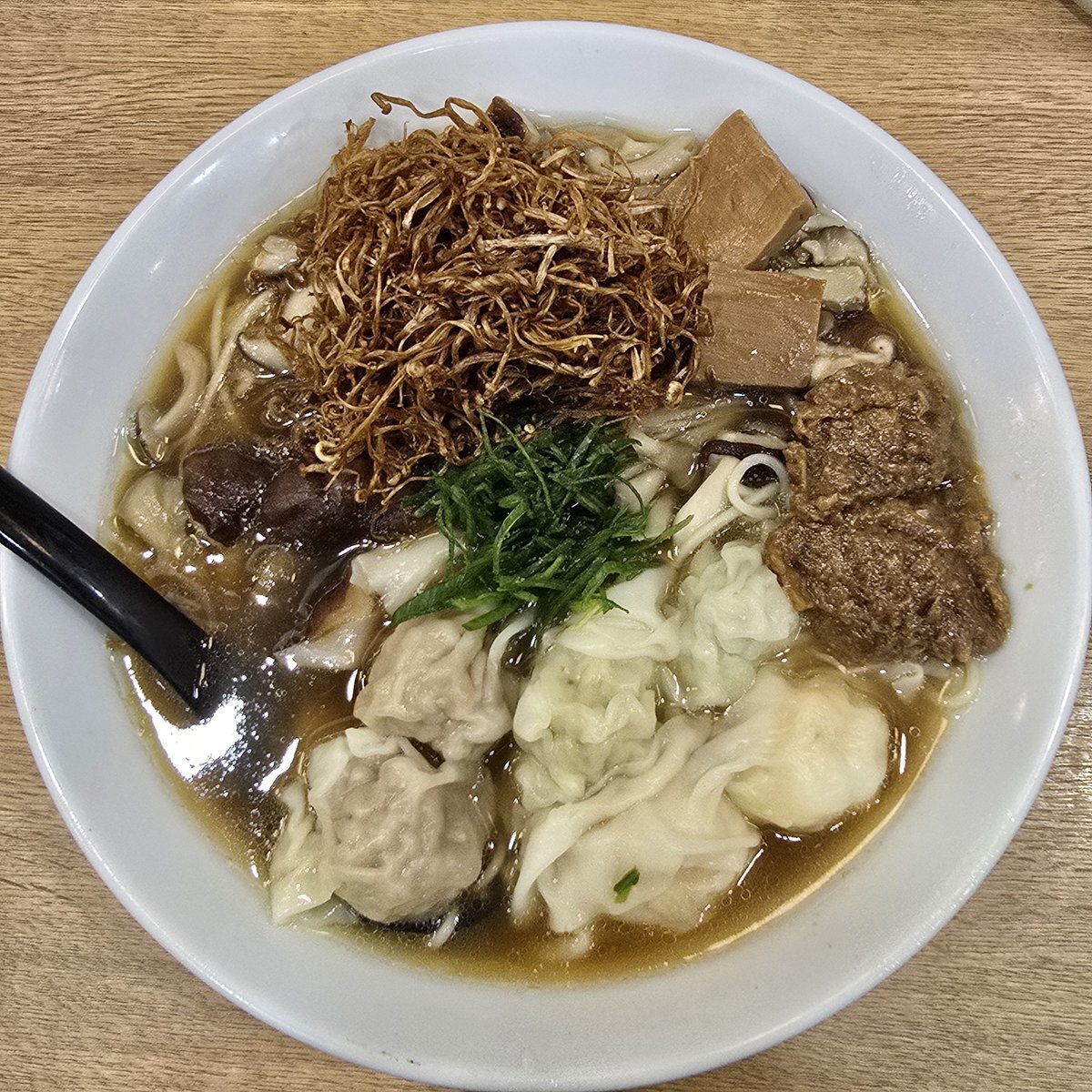 20251028 (545杯目) 愛知県名古屋市南区の支那ソバきたがわ。 限定の トリプルミックスワンタンメン +きのこそば変更。 #支那ソバきたがわ #トリプルミックスワンタンメン #きのこそば pic.x.com/d7Oojk1uMz