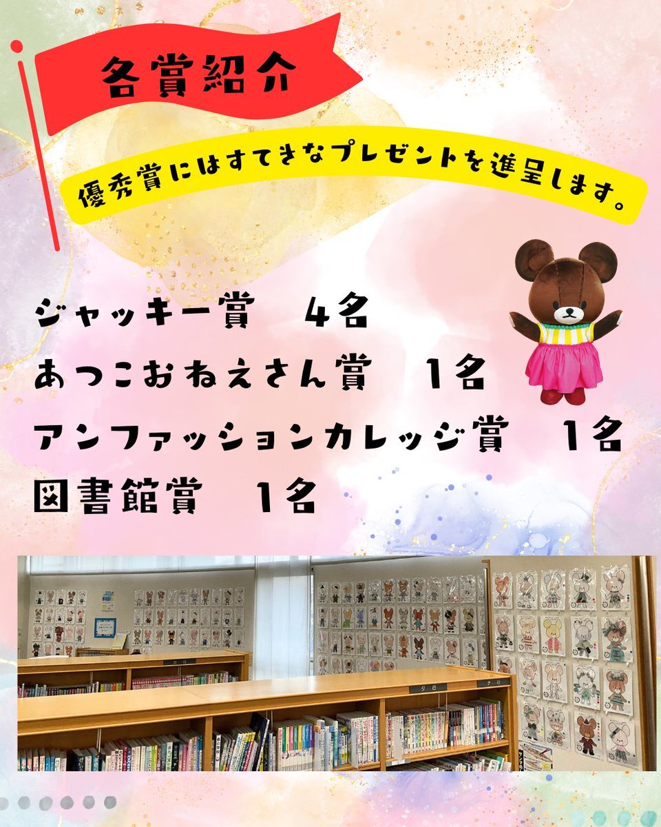 ◉ #くまのがっこう 子育ち応援プロジェクトハギレで作ろう!#ジャッキーのお洋服コンテスト 図晝館賞の大投票開催中!⚫︎11/19日(水)まで ◉優秀な作品には、素敵なプレゼントを進呈! 【優秀賞】•#ジャッキー 賞4名•あつこおねえさん賞1名•アンファッションカレッジ賞1名•図書館賞1名 pic.x.com/mtU33aUoDs