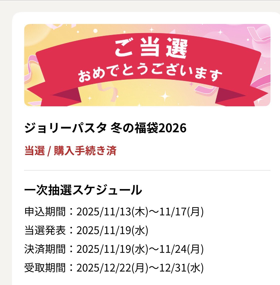ジョリーパスタ、「2026年福袋」を明日より抽選販売開始!「くまのがっこう」グッズ&お食事券がもらえる rbbtoday.com/article/2025/1… @jollypasta_jp #ジョリーパスタ #ジョリーパスタの冬の福袋 #福袋2026 #くまのがっこう #ジャッキーのトマトづくり #キルティングバッグ #湯たんぽ #中綿マフラー pic.x.com/BN4sNCmgc4
