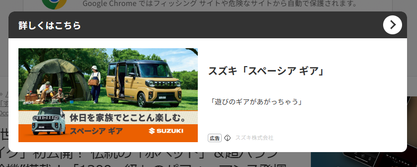 ウィンドウの左上隅っこに小さく「閉じる」ってのが有った。なんという悪辣外道な広告手法を使いやがるんだ、この野郎💢 許さんからな #くるまのニュース & #スズキ