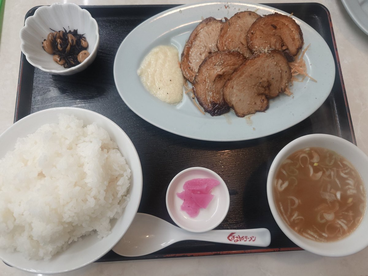 くるまやラーメン👏 チャーシュー定食✨ 焦がしチャーに…辛めのニンニクに 醤油をかけて頂くのが… また…美味いんだよなぁ〜😋 #くるまやラーメン #チャーシュー定食 pic.x.com/IuZeqihiye
