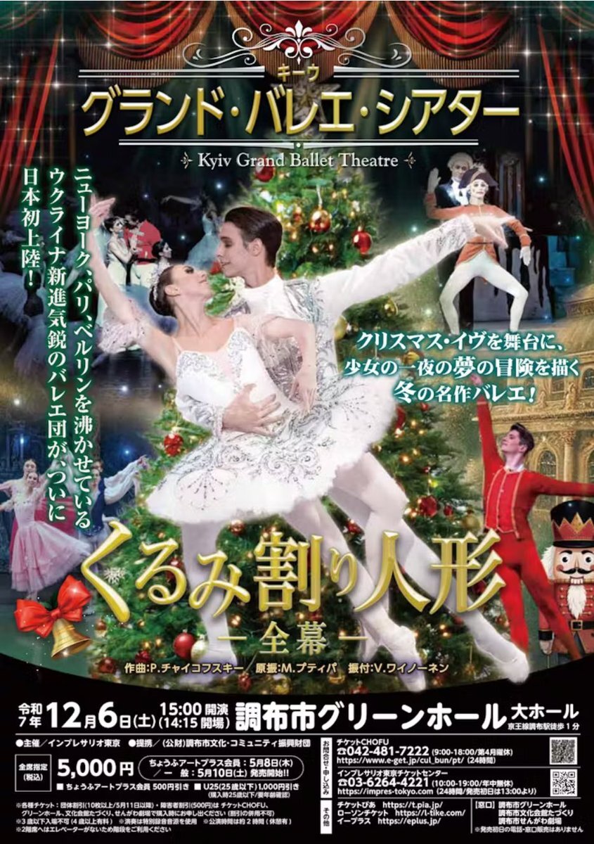 「キーウ・グランド・バレエ・シアター」日本初上陸! 世界で活躍するウクライナの新進気鋭バレエ団による、名作 #くるみ割り人形 が上演されます。 日時:12月6日(土) 15:00開演 会場:#調布市グリーンホール 大ホール 詳細・申込🔽 chofu-culture-community.org/.../archives/3… #調布 #キーウグランドバレエシアター pic.x.com/DdC4EHh9oI