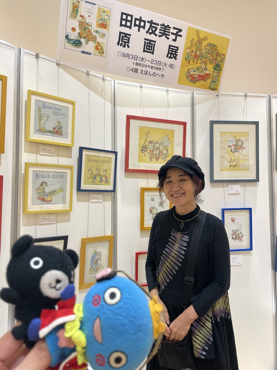 こちらも最終日! 西宮阪急さんへ移動して、 『田中友美子 原画展』へ! 妹さんの田中美貴子さんに、 お会いする事ができて、 お話しをさせていただきました♡ 柔らかく優しいタッチのイラストを、 受け継いでいる事や2人の絵の違いなど♪ みやたんとも繋がりが!? #DJちびみやたん #くろくまくん pic.x.com/NQGWgBaLS9 x.com/ggn_hyogo/stat…