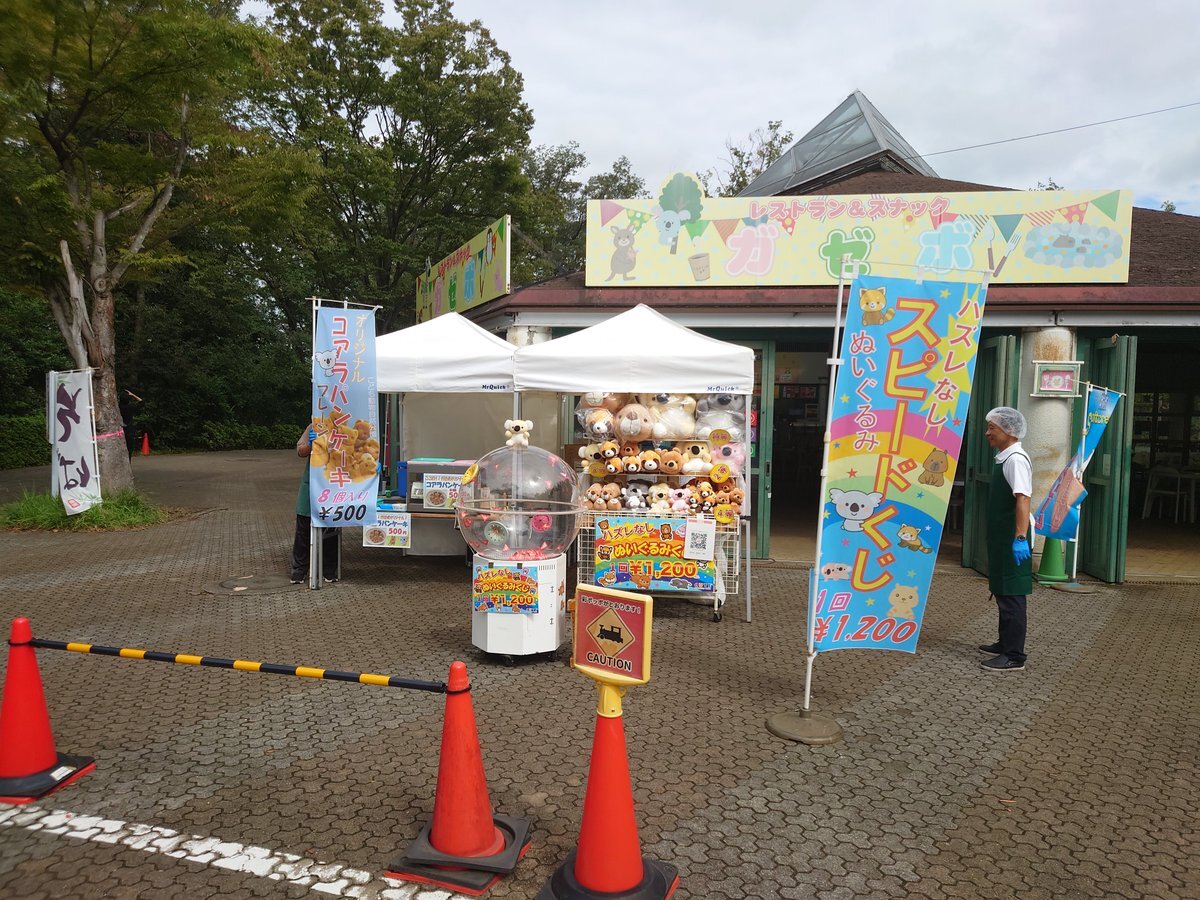 本日10月5日(日)曇!スピードくじは1回1200円はずれ無し!ぬいぐるみが当たる!今日コアラパンケーキ販売500円! #こども動物自然公園レストラン #こども動物自然公園 #ガゼボ #スピードくじ pic.x.com/iAwXsULHHq