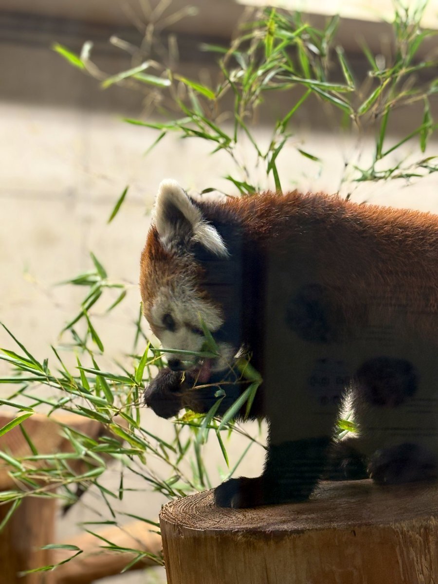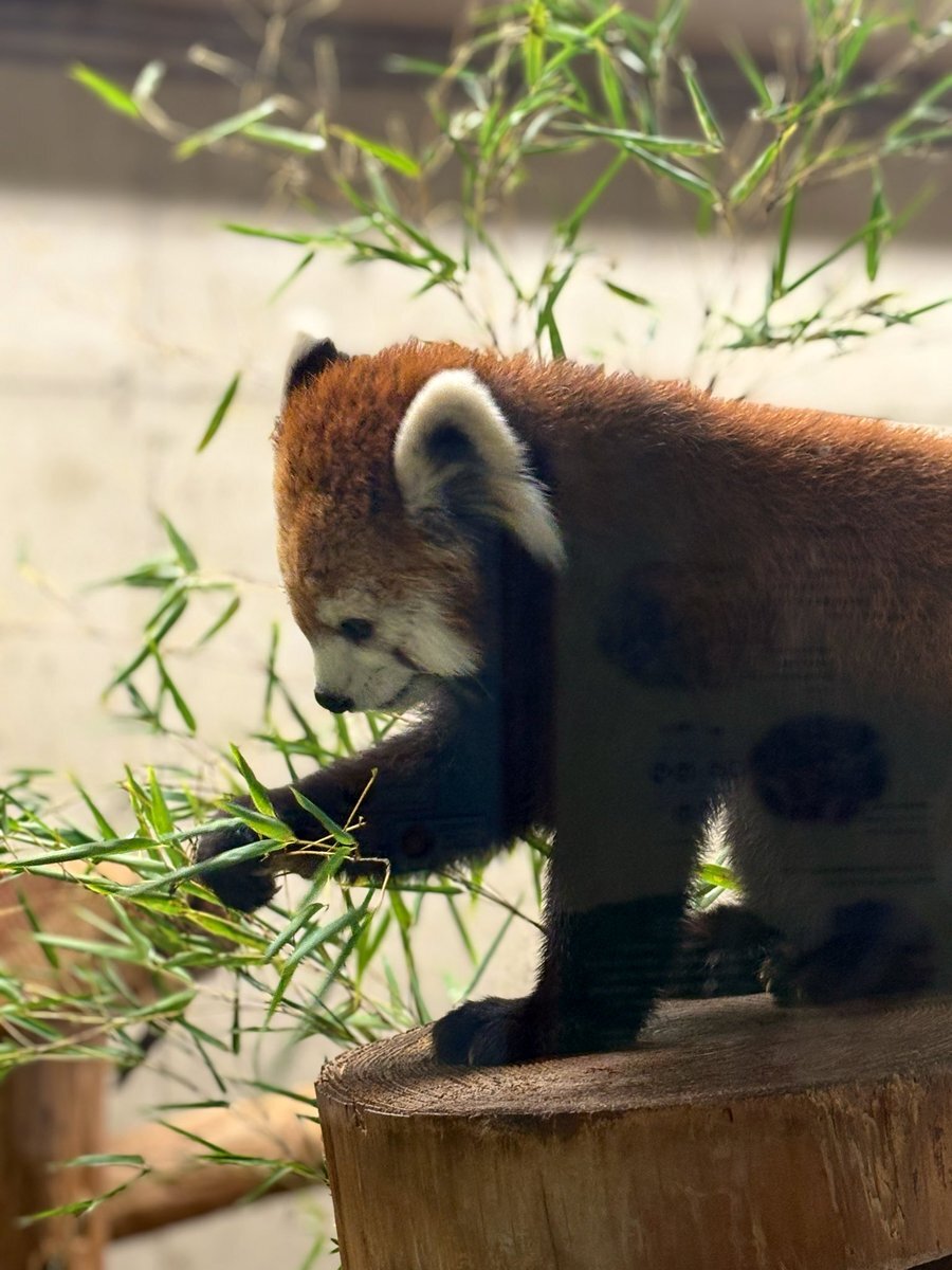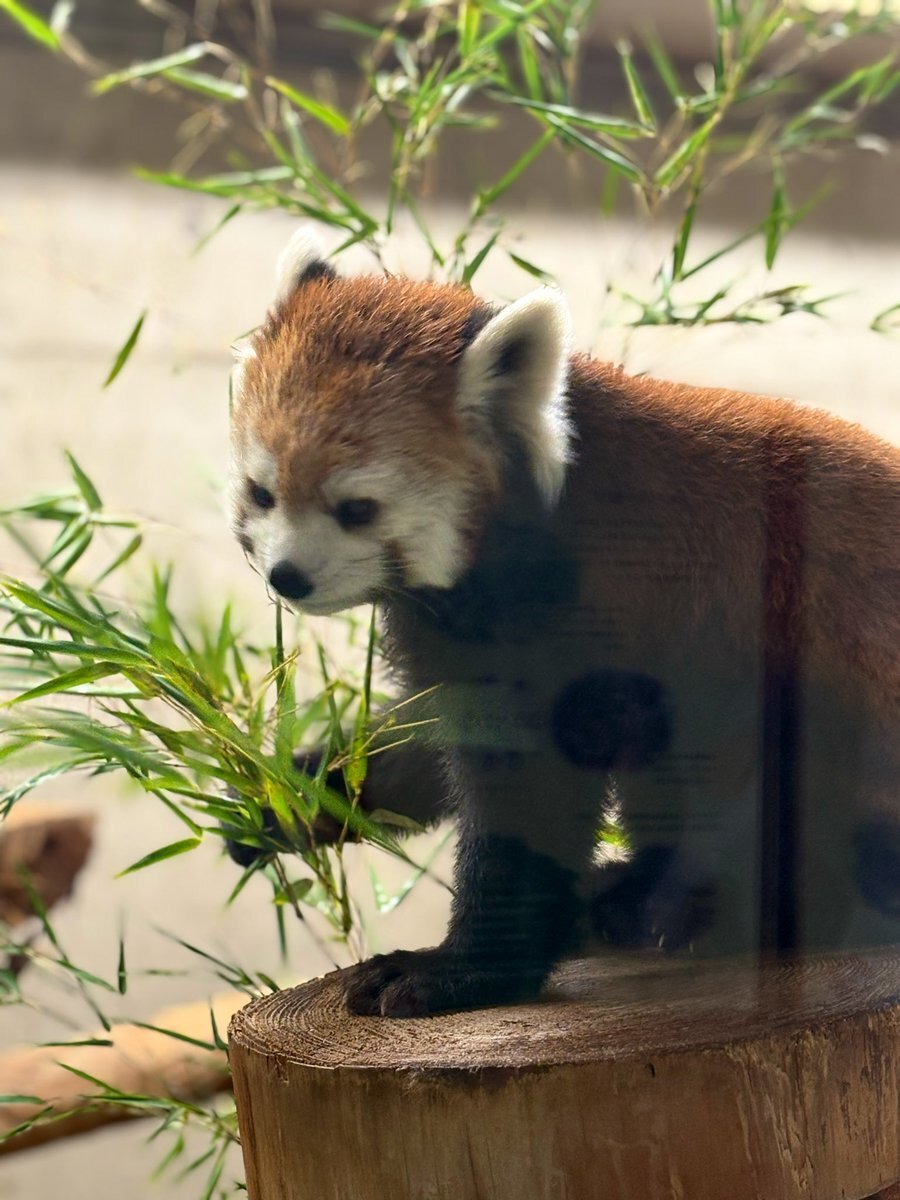 レッサーパンダとパンダって仲間?笹食べてる。動物園に行くと動物は見るんだけど、カワイイなぁって思いながら説明書きは通り過ぎちゃってるかも( ;ᵕ; ) ガラス越しだったから反射しちゃってるけど、とても可愛かったので✨お食事中(*´▽`) #こども動物自然公園 #レッサーパンダ pic.x.com/zZS1LoPZ34