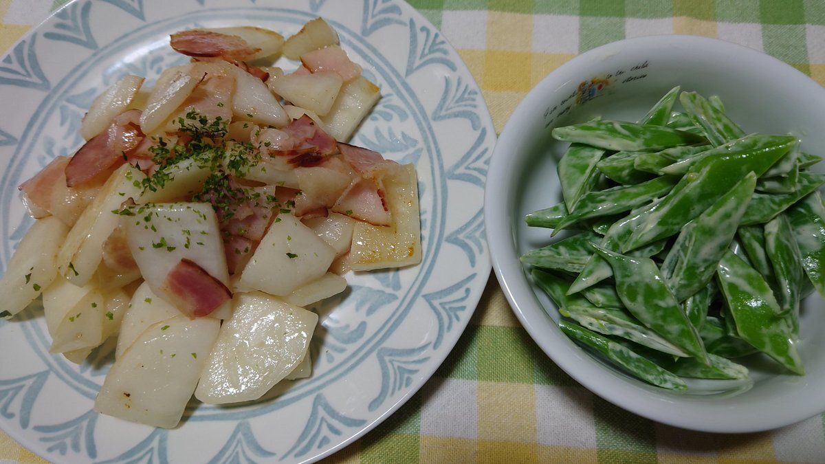 晩ごは〜ん 蕪のバター炒め モロッコ豆マヨ和え 蕪をいただいた 柔らかくて甘い ありがとうございます ご飯食べましたか? #晩ごはん #おうちごはん #手作りご飯 #映えないご飯 #ごちそうさま #ごちそうさまでした pic.x.com/htdmeXmxhU