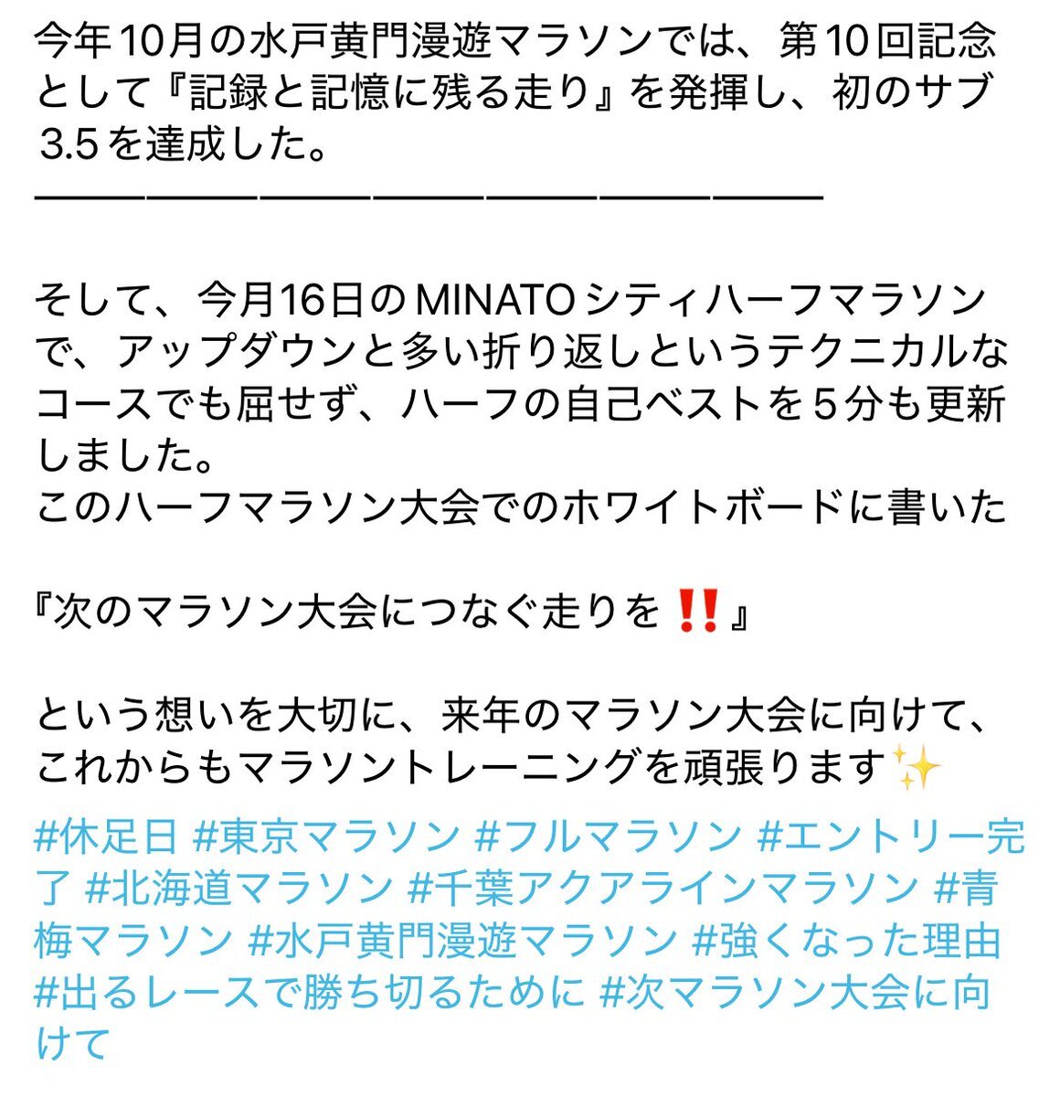 🟡練習がすべて🟡 いよいよシーズンイン 1103 #ぐんまマラソン →PBも5時間切りならず 1116 #ひたちシーサイドマラソン 0110 #ニューイヤーマラソン ハーフ 0207 #さいたまマラソン 0215 #青梅マラソン 30k 0329 #佐倉マラソン 予定 走れることに感謝