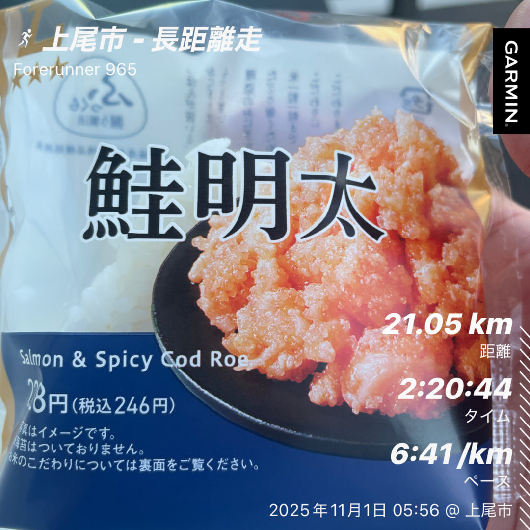 朝ラン完了☀️ 今日はロングジョグ。 ウルトラを意識して、キロ7よりちょい速めのペースで。 なにも食べずに走り始めたら腹減りすぎて🍙 鮭と明太子の塩分が沁みる…たまらん。 #さいたまマラソン #チャレンジ富士五湖ウルトラ pic.x.com/3Rd87sqghR