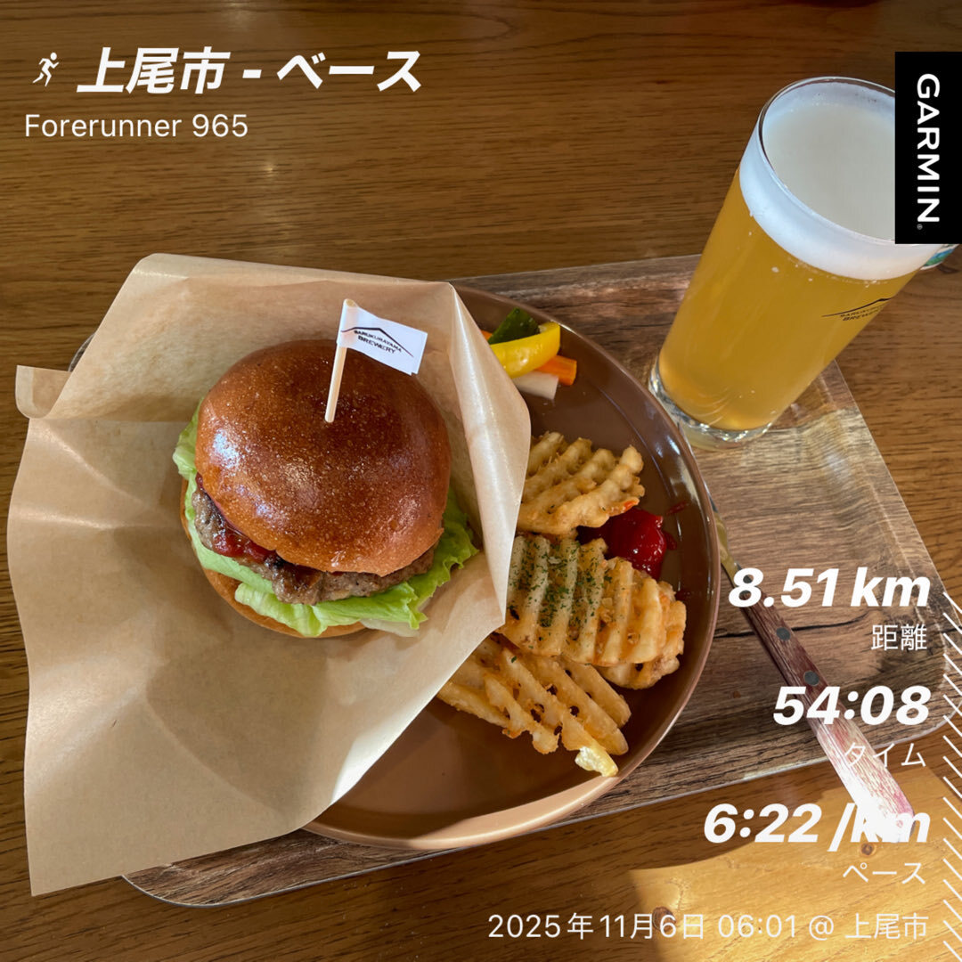 朝ラン完了🏃♂️ ベース走のはずがテンポ走判定😂 Garminコーチのペースで走ると、なぜか心拍ゾーン4に突入してしまう問題。 ベース走って、もっと楽なはずでは…? 魚沼の里「猿倉山ビール」のハンバーガーセット🍔🍺 #さいたまマラソン #チャレンジ富士五湖ウルトラマラソン pic.x.com/S4KN9Y6w9n