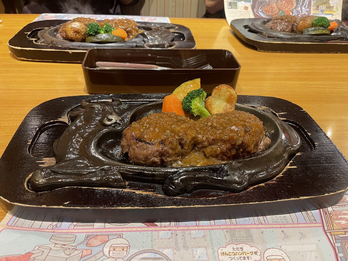 静岡来たらこれを食べなきゃ、で晩ごはん #ディナー #さわやかハンバーグ #牛肉100パーセント #デザート #コーヒーゼリー #乾杯 #静岡観光 #静岡グルメ #旅行 #家族旅行 pic.x.com/sXqmLmPDZi
