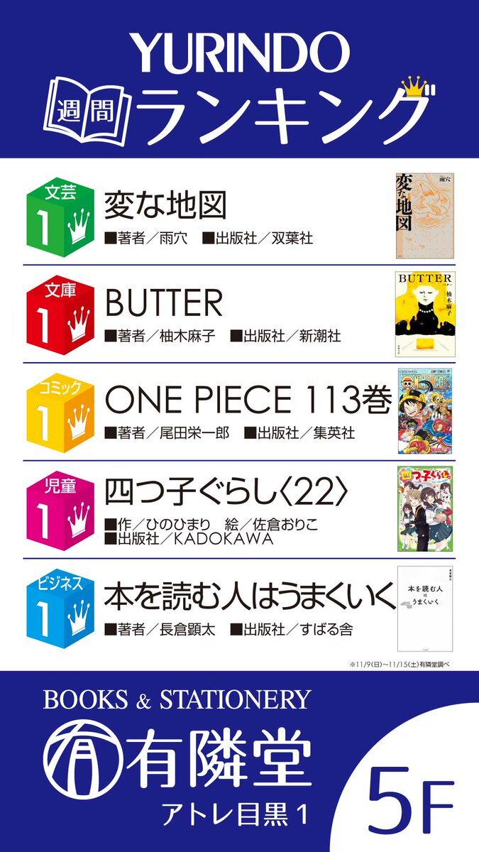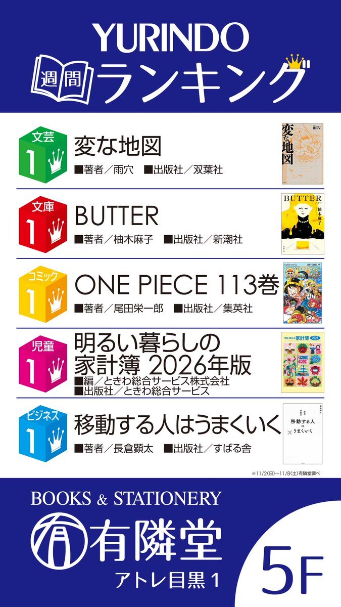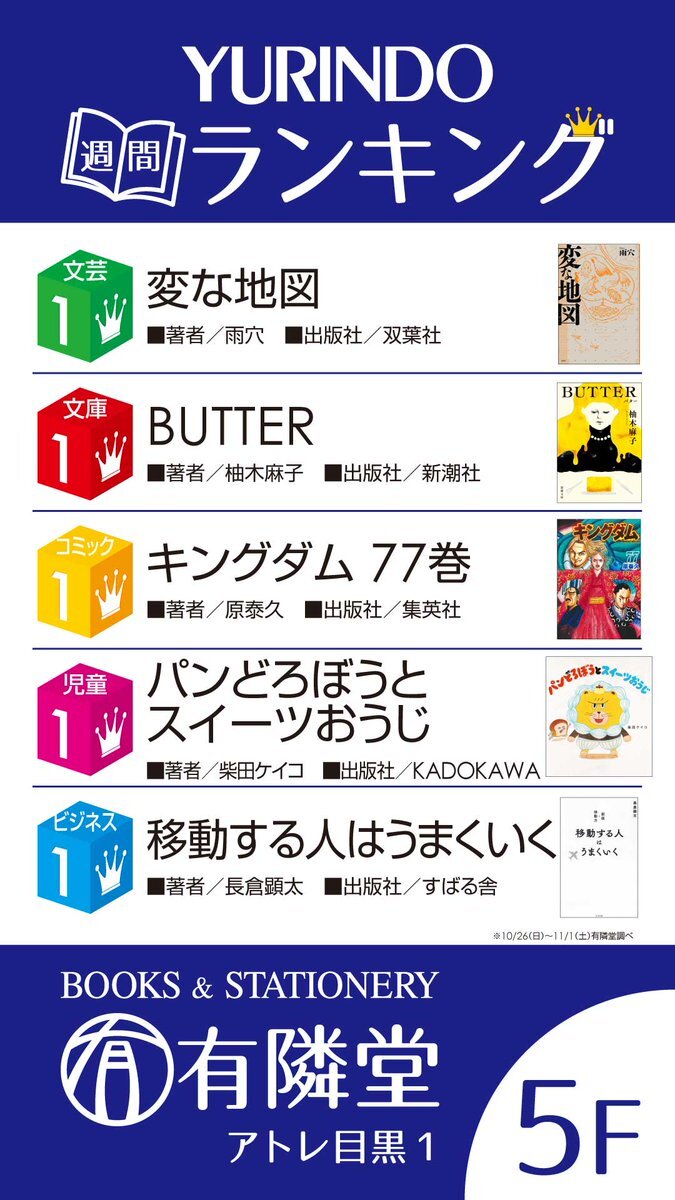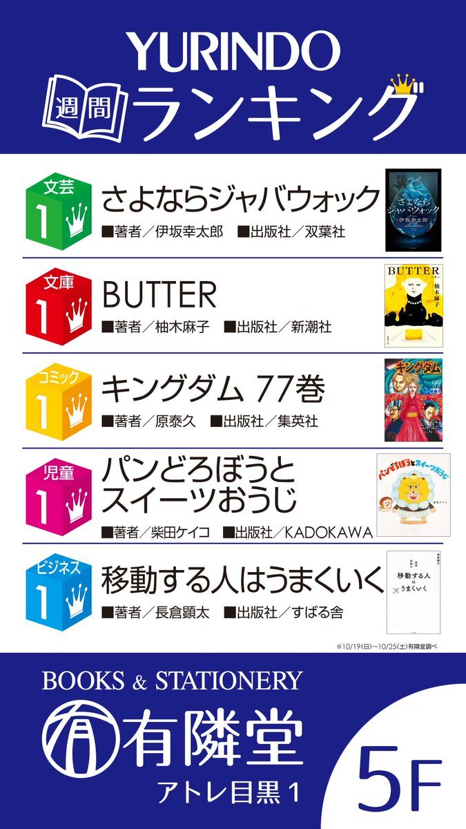 ◆今週のランキング◆ 文芸書1位は #すばる舎 より『コールドムーン』です。 現在映画が公開中でベストセラーにもなった『ストロベリームーン』の続編となっております。 切なくて泣けると話題の青春純愛小説、是非お手に取ってみてください。 #芥川なお pic.x.com/WBXr6s8npl