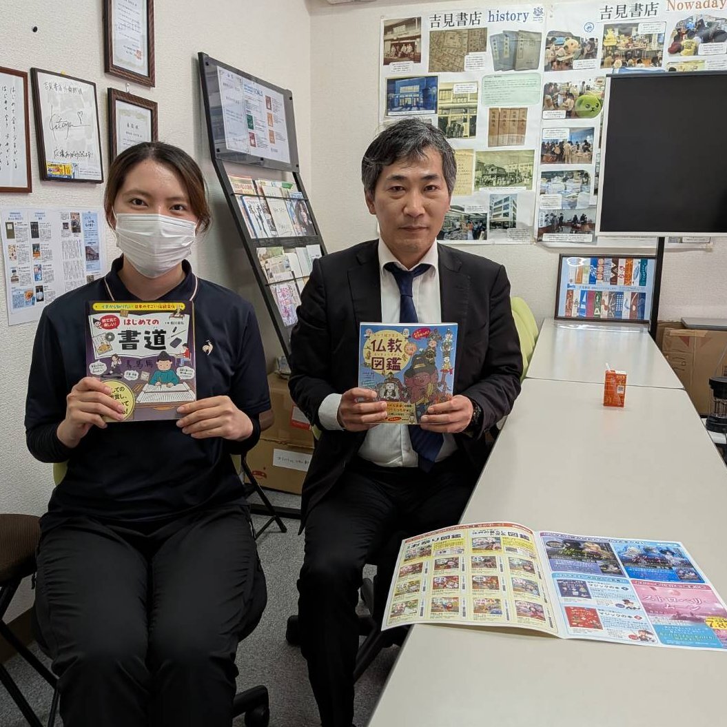 #すばる舎 岡野さんが外商本部にお越しくださいました!人気の #仏教図鑑 #もっと深掘り編 も9月に発売✨ 11月新刊 #はじめての書道 は学校や教室、家庭でもお役立ち間違いなしですね🤗10/17から #映画化 されている #ストロベリームーン も注目です💓 #吉見書店 #本好きな人と繋がりたい pic.x.com/zkN60PBHiJ