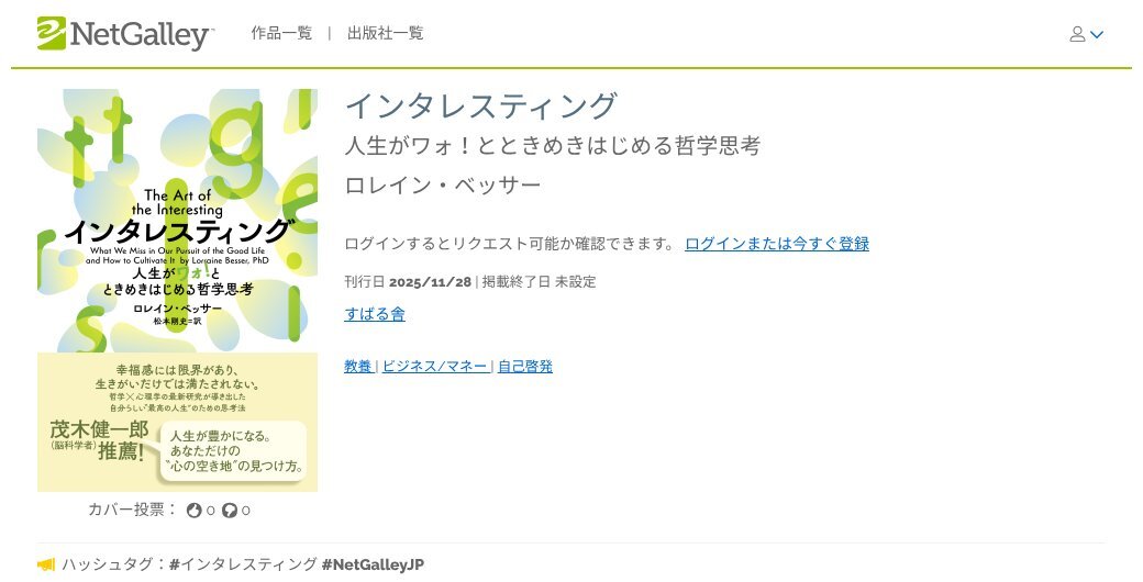 Interesting ーーそれは“グッド・ライフ”に欠けていた最後のピース。 【#新着作品#NetGalleyJP#すばる舎 『インタレスティング』ロレイン・ベッサー 刊行日2025/11/28 詳細はこちら⇒netgalley.jp/catalog/book/7… pic.x.com/XQJwL8RdMJ