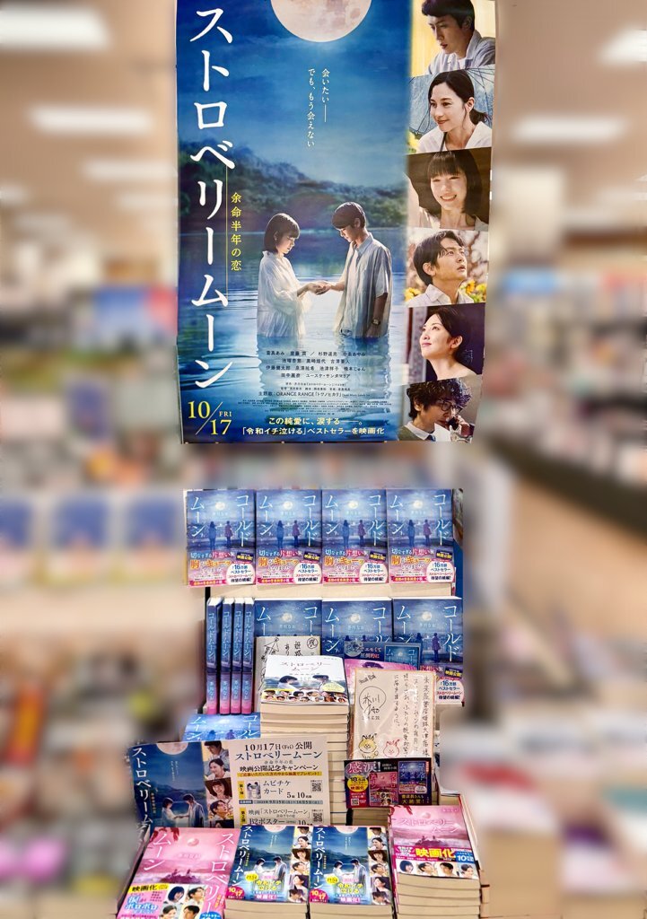 📽️映画公開中📽️ 姫路大津店ではシリーズ累計売上400冊超え!#芥川なお 先生の『ストロベリームーン』大ポスターとともにズバッと展開中です🍓 シナリオブック、コミック、続編の『コールドムーン』もぜひ🌝 #ストムン #すばる舎 pic.x.com/8IF1Sxys4U