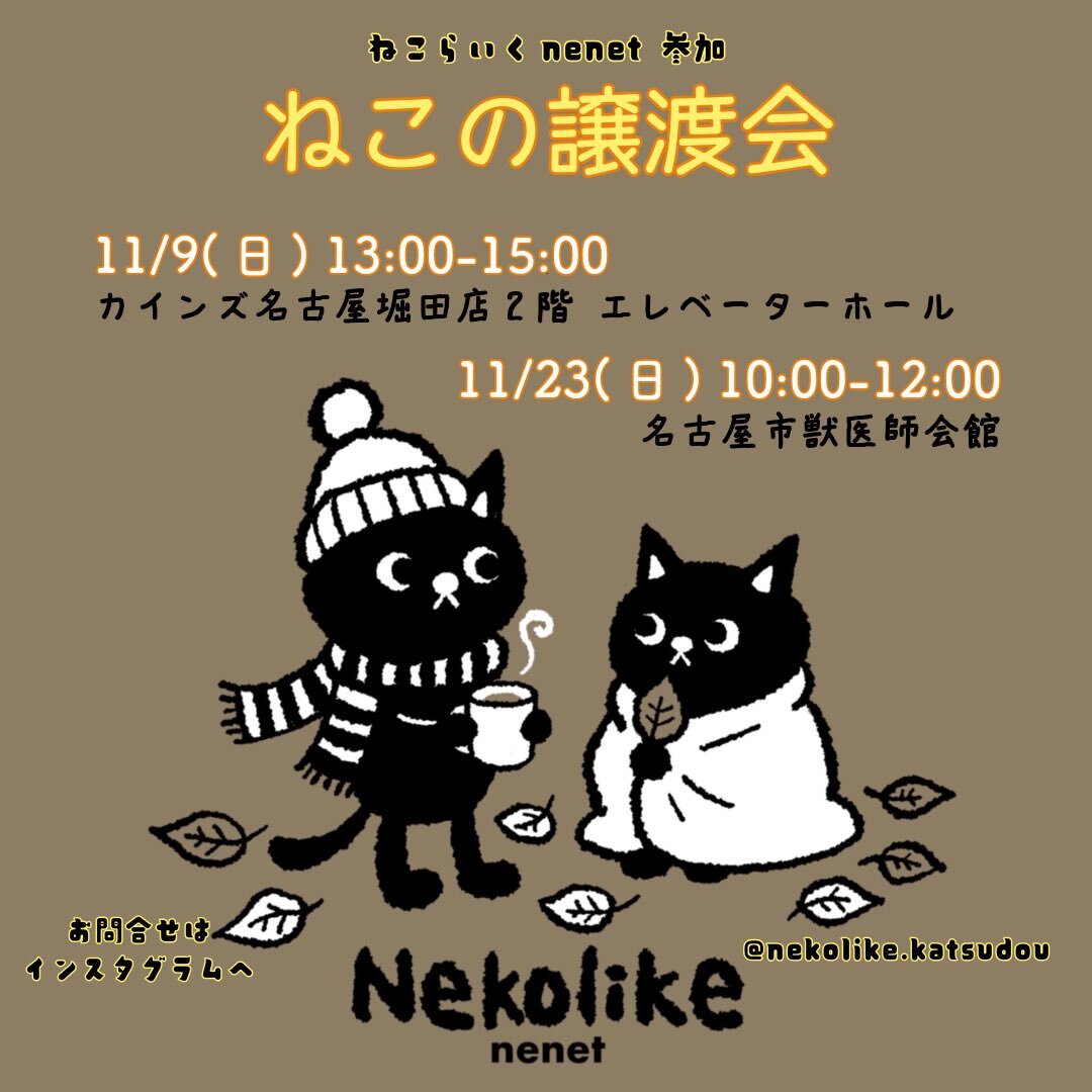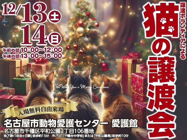 ねこらいくnenetは、 🌸14日(日)13:00-15:00🌸 名古屋市動物愛護センター 愛護館での譲渡会に参加させていただきます🐱❤️ よろしくお願いいたします🤲 #保護猫 #譲渡会 #ずっとのおうち pic.x.com/WabXQaUNHw