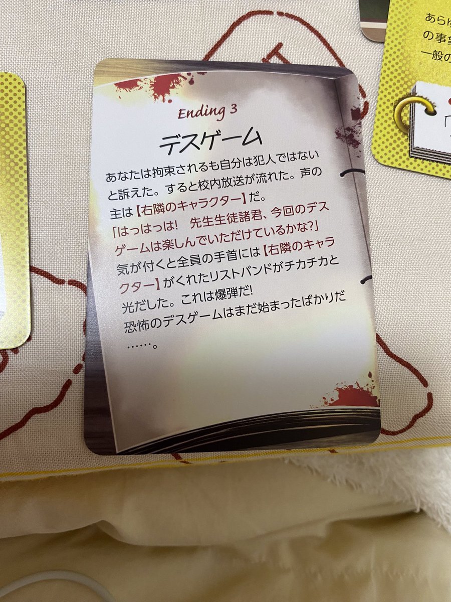 食後は旦那さんが新しく買ったボドゲ、3人〜用を無理矢理2人でやった! 追求系、人狼ぽさもあって役になりきると楽しい🤭 生徒さん用だっていうけど、大人数でやると良さそうね😉 #そういうお前はどうなんだpic.x.com/41AB09zy9o