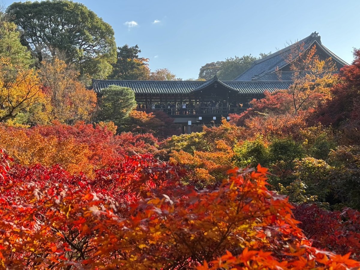 お天気に恵まれた本日は東福寺に来ました🚃 先週より色づきに深みを増して、より一層美しい景色が広がっています🍁✨ 暖かい陽射しを受けて、鮮やかに揺れる紅葉にうっとりしてしまいますね...☺️お天気が良いので、広い境内でゆっくりと散策を楽しみました🚶‍♂️局員 #そうだ京都行こう pic.x.com/yRWspzDhBY