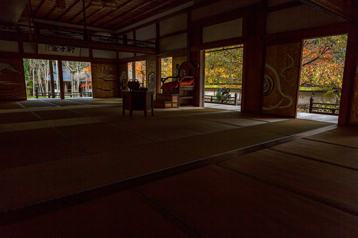 天龍寺にも追加300円で講堂にはいれました。紅葉が畳におちてきました。まさに雅の世界です。  #そうだ京都行こう pic.x.com/F3UPNs1BB9