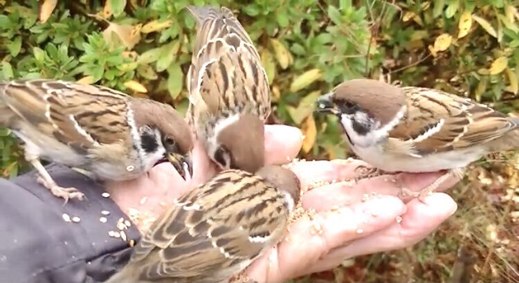 こんばんはです🙇‍♂️ 今日も昼間は6度しかなかったです💦 12月中旬並みの気温らしいです🥶 今朝の仲間達の様子でチュン🐥🍀 仲間達はベンチと石段で賑やかにご飯会をしました🥰🍁🍂🍚🐥🐥🐥 今日も一日お疲れ様でした😊 暖かくゆっくりお過ごし下さい🌃♨️🍁🍂 #ちゅん活 pic.x.com/8UkAFO8WRd