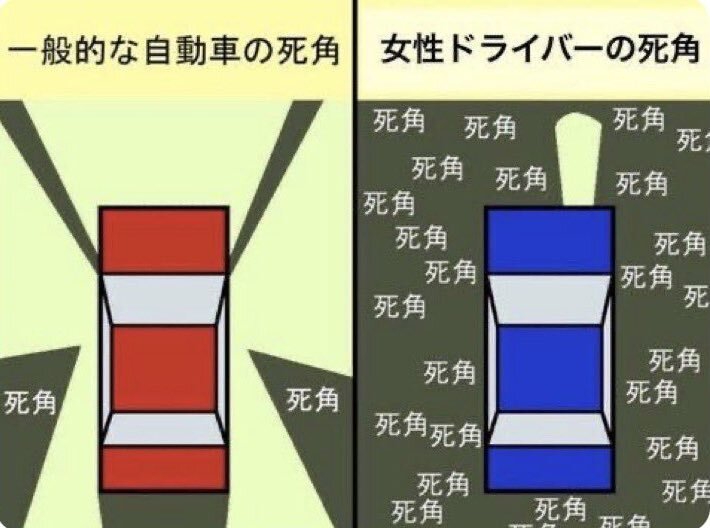 最も恐ろしいのが 死角であると認識していないことです 全てが死角だという認識があれば 死角だらけでも問題ないのですが 見えていると自信を持って誤認しています これは 男性女性あまり関係ない気もします 女性でも左が多数派でしょうし 高齢男性の半数くらいは右だと思います #偏見 #ではない x.com/googb777/statu…