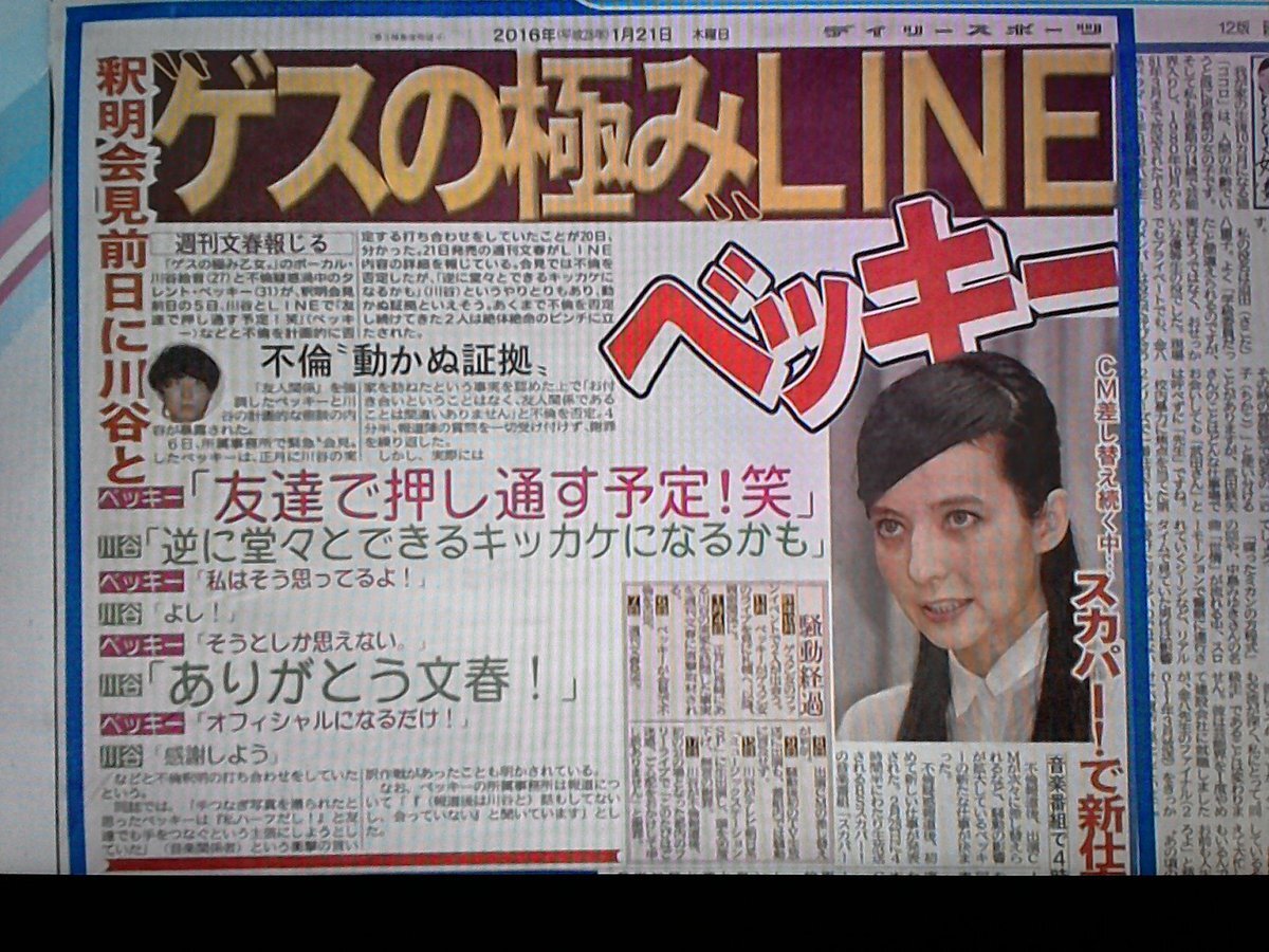 ゲスの極みLINE 川谷 逆に堂々とできるキッカケになるかも ベッキー 私はそう思ってるよ! 川谷 よし! ベッキー そうとしか思えない。 川谷 ありがとう文春! ベッキー オフィシャルになるだけ! #とくダネ pic.x.com/5h0ZByX1Z6