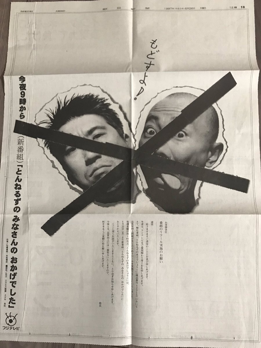 こんなのがあった😆 1997年6月26日(木) 朝日新聞 #とんねるずのみなさんのおかげでした pic.x.com/7YeLyGehvt