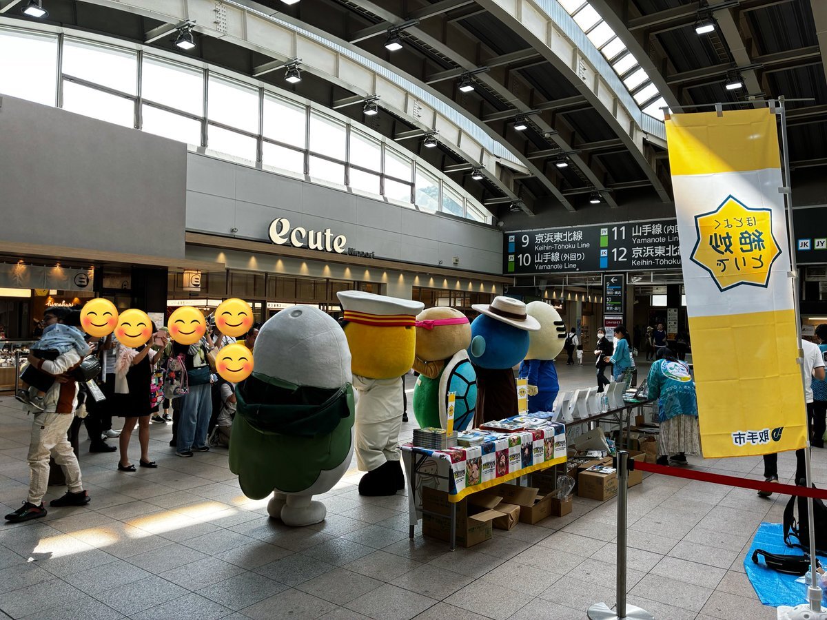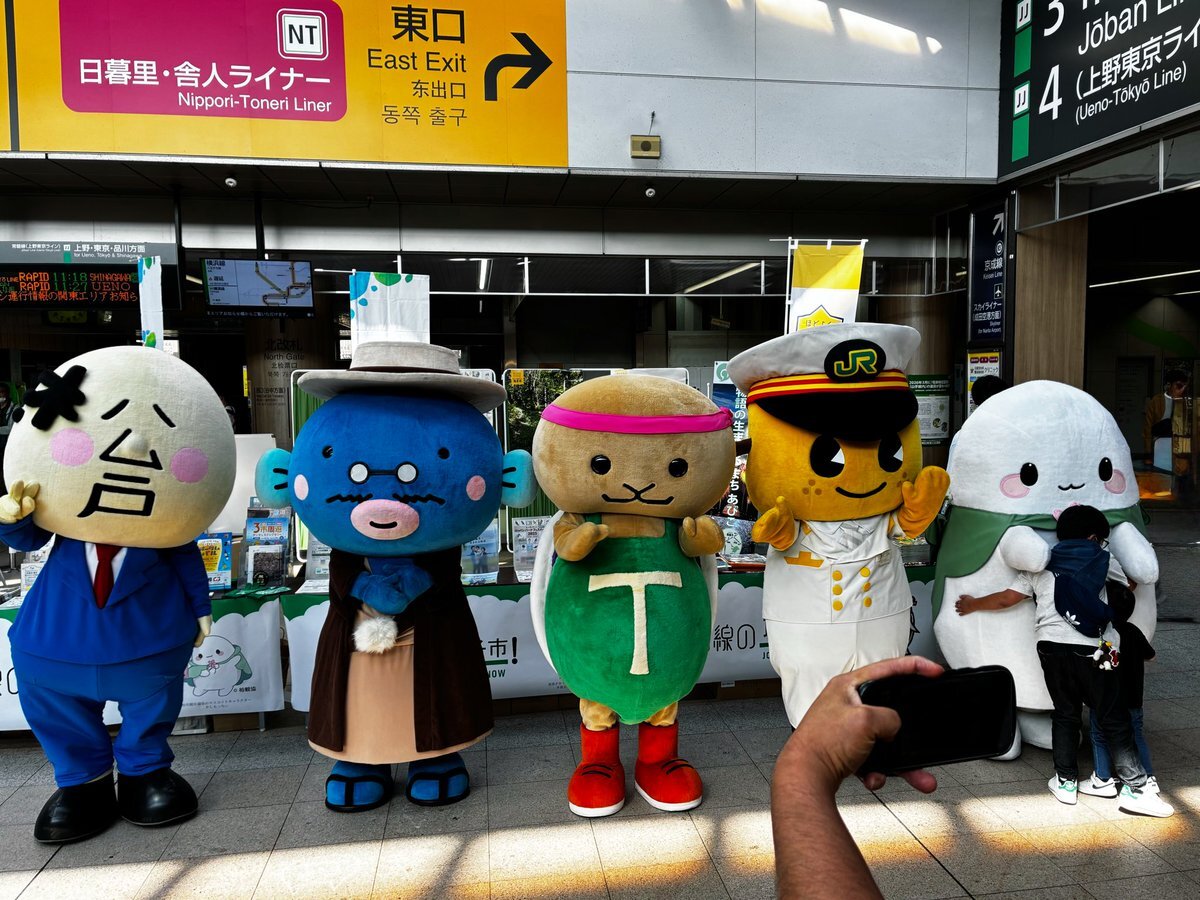 隣では常磐線イベントやっています ゆるキャラ5体に会えました😍 午後にも来るよ〜 本日最終日! 「HOW HOUSE PICK UP CREATORS」 東京 日暮里駅北改札内 20:30まで開催中です @event_how #HOWHOUSE #ガラス #とんぼ玉 pic.x.com/4mI9xLU7jC