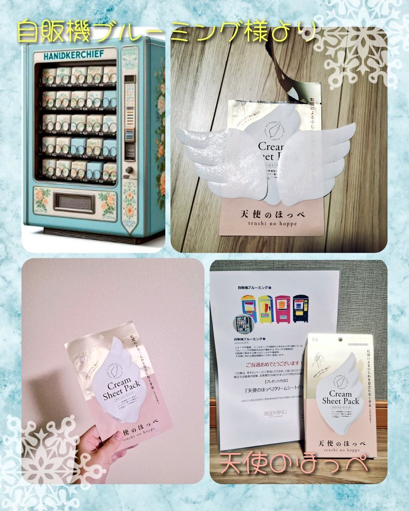 自販機ブルーミング様(@jihanki1879 )より、天使のほっぺ羽型クリームシートパックを頂きました☺ 🪽見た目可愛いけど貼りづらそう→だからこそフィット🙆💕 🪽クリーム足りるのかな?→剥がした後顔全体に塗り込めるくらい余裕👌 もっちもちになれて最高🥰 ありがとうございます✨ #ねこの当選報告 pic.x.com/I1yM8IBY92