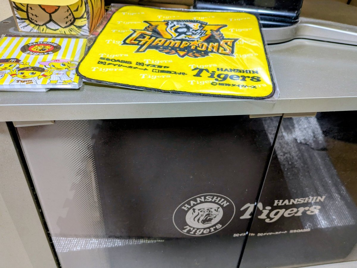 #模様替え #のれん #チェック柄 #阪神タイガースコーナー🐯🐯😝 実家にまだあったのれんを持ってきたの🔴お気に入り🟥 気分転換で🐯コーナー笑作った!スーパーで貯めた阪神グッズなのよ🎶 #阪神タイガースガンバレ! pic.x.com/uASVFyNiox