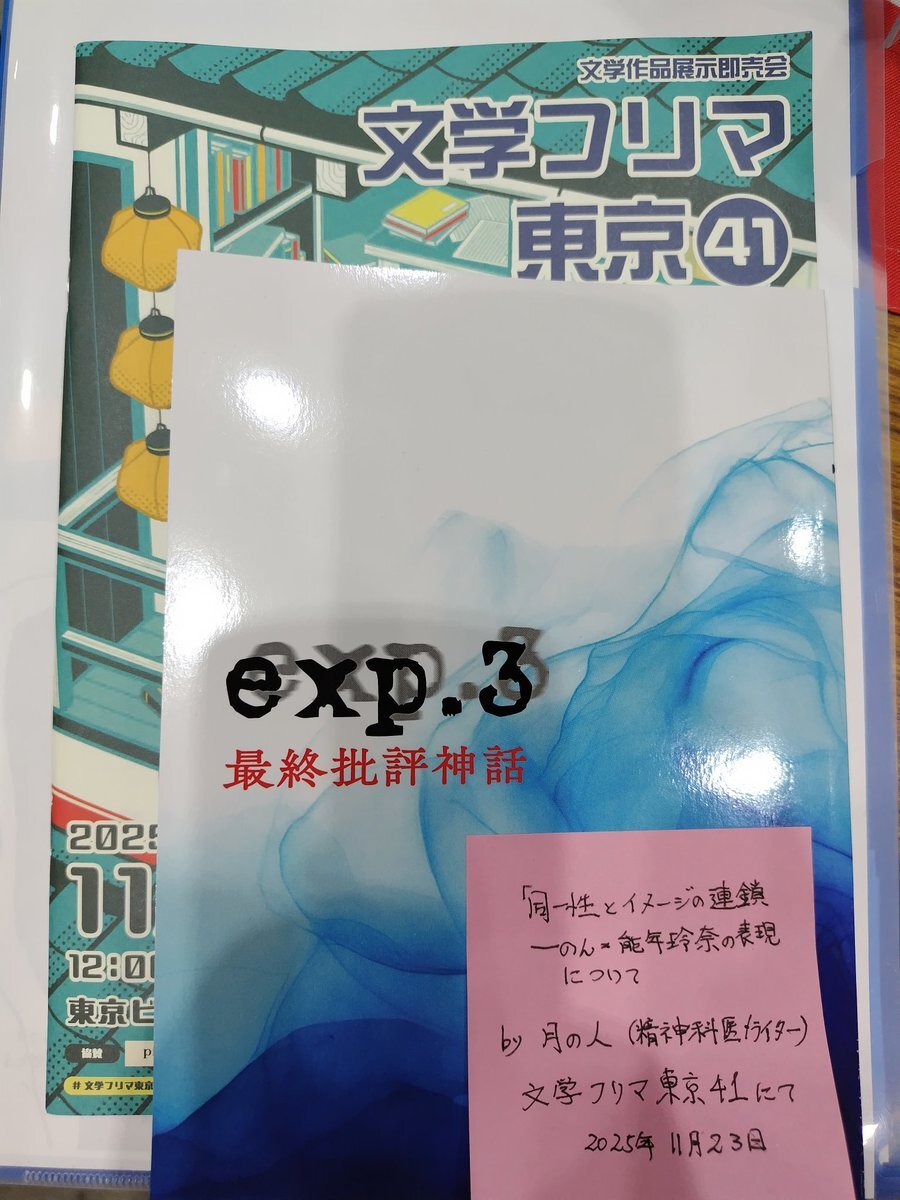 #文学フリマ東京41 で入手した #のんちゃん に関する評論です。#のん に改名してからの俳優とミュージシャンとしての活動を精神科医の知識を交えて客観的だけど好意的に述べています。#Renarrate の歌詞の解釈や #てっぺんの向こうにあなたがいる にも言及。🥰「同一性とイメージの連鎖」#月の人 pic.x.com/Ld0LJxpXWT