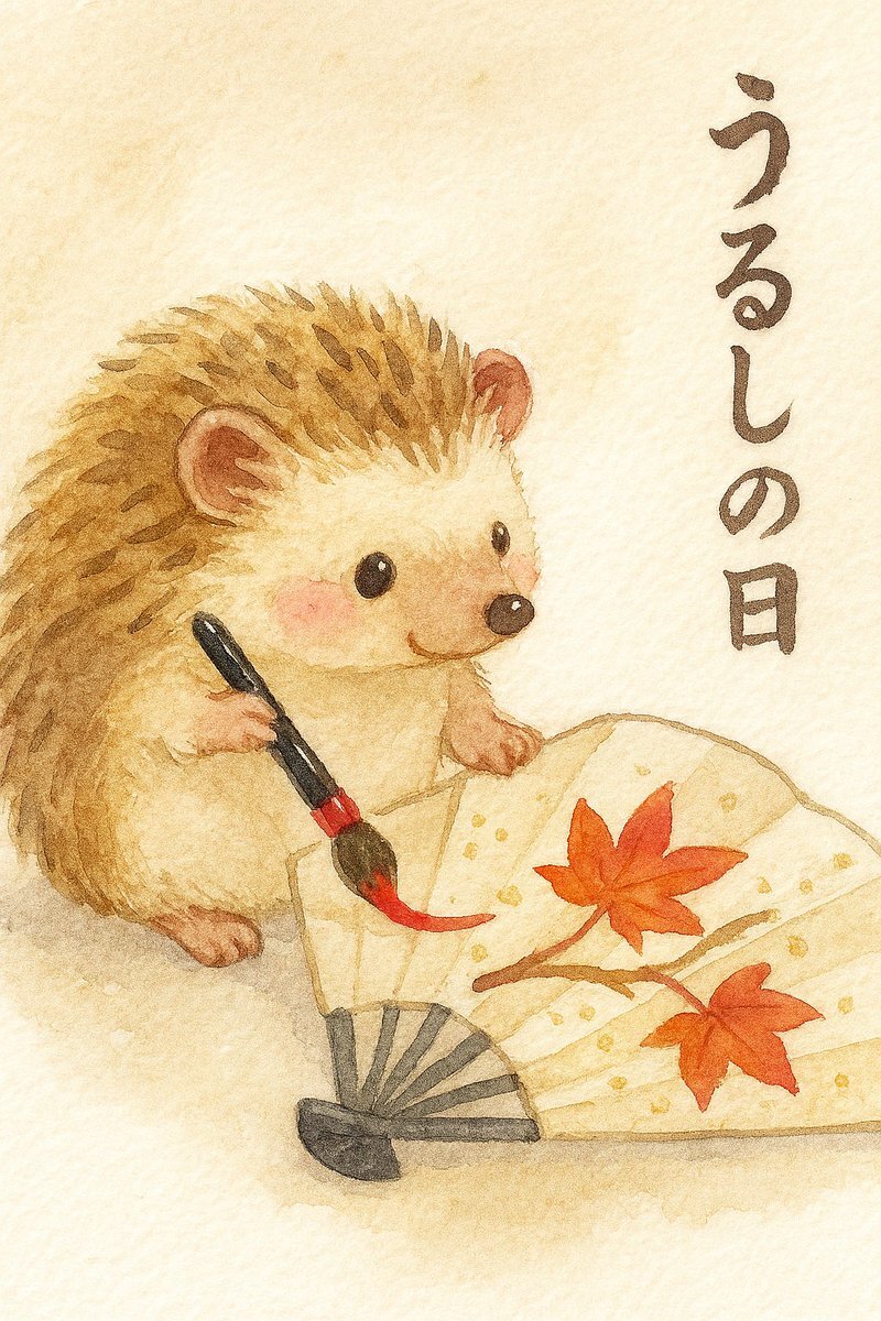 #うるしの日 🎨 小さなはりねずみが漆筆で紅葉を描く、秋の静けさと和の美しさがにじむ水彩のひととき。 #水彩イラスト #はりねずみ #秋のイラスト pic.x.com/9QaLvWQvVL