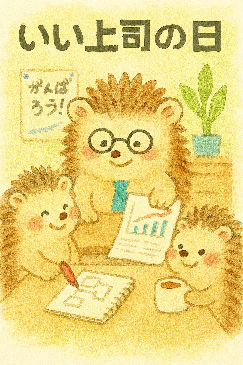 今日は #いい上司の日 🧸 やさしいはりねずみ課長、部下たちに資料を見せながら「一緒にがんばろう!」 ほっこりオフィス風景です🌿 #はりねずみ #癒しイラスト pic.x.com/Z5DgY6Acgu