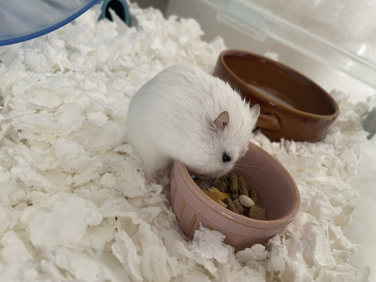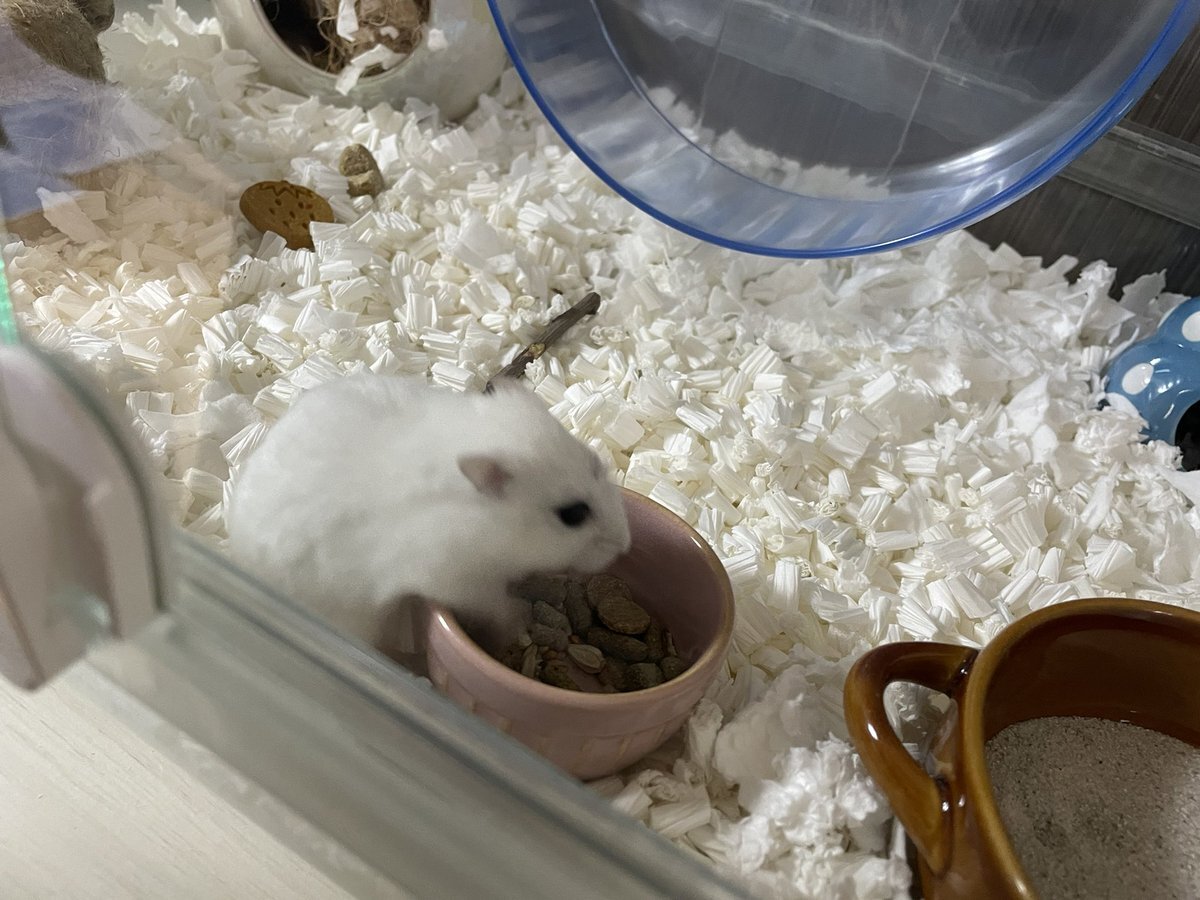 どの色のハムも365日可愛いけど、ホワイトハムは冬が特に可愛いね🥹!!!もうほぼ雪うさぎ🥺❄️ #ハムスター #ぱぴこ pic.x.com/N7UKFbW3Wx