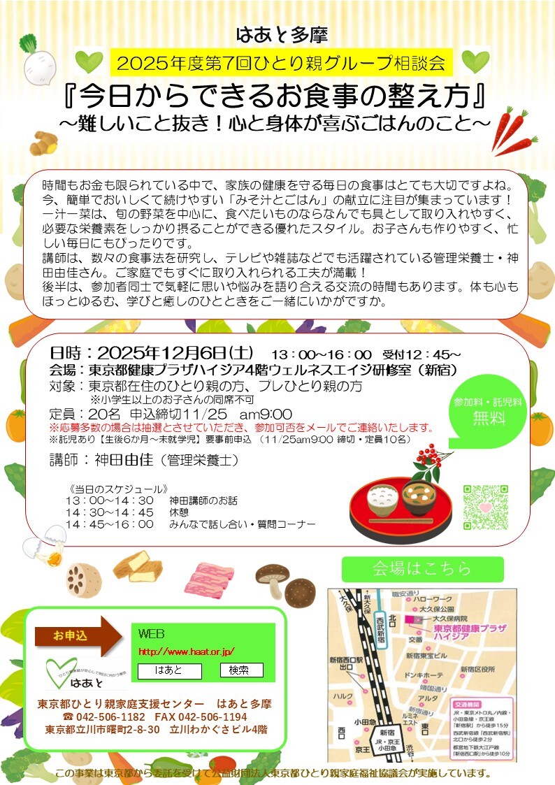 東京都ひとり親家庭支援センター「はあと」は、都内の #ひとり親 家庭の総合的な支援センターです。 はあと多摩主催!第7回ひとり親グループ相談会\参加申込受付中/ 📅開催日:12月6日(土)託児あり 詳細・申込👉haat.or.jp/event/251206gr… #東京都 #子育て支援 #シングル #ママ #パパ pic.x.com/lqfPRePu4j