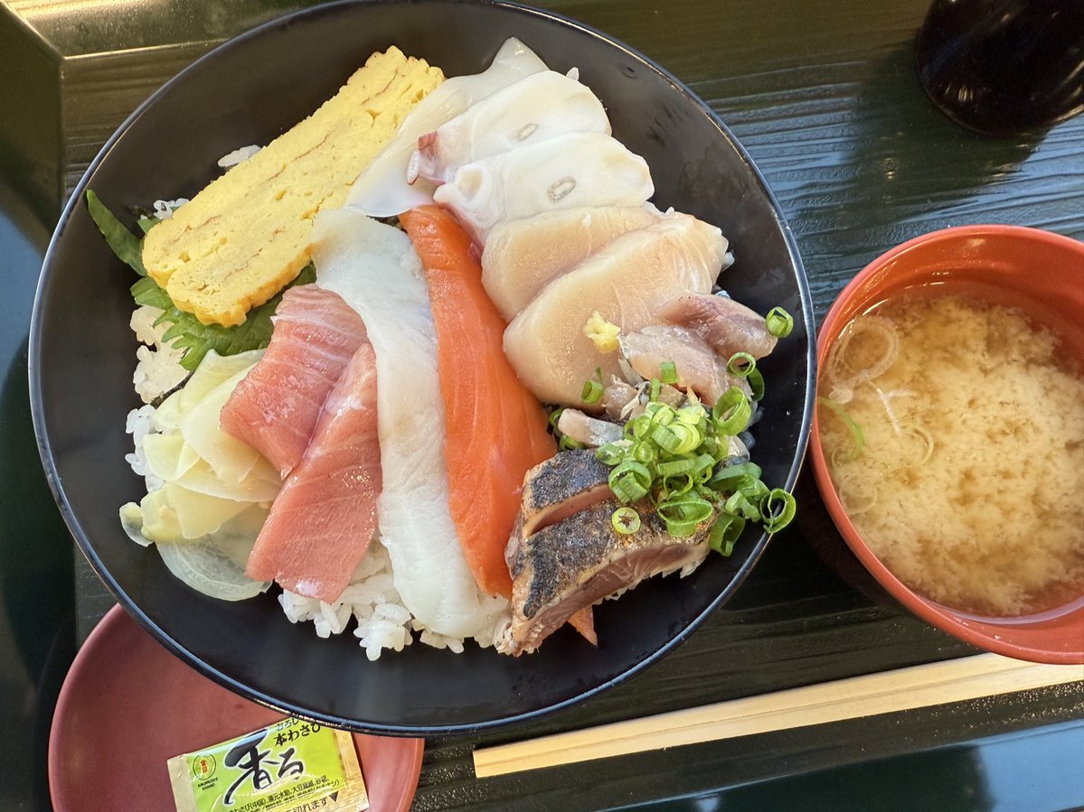 体調よろしくないので近場にて 食欲はあまり落ちない笑 朝の海鮮丼♪1日限定20食800円 朝の海鮮丼は開店から8分で完売 朝の握り寿司は開店から15分で完売 してました! 早い時間からはそんなに人は居ないなと 思いながら後ろに人が居るので 早い時間に無くなる土曜日 #ふじ膳 #土曜日ルーティン pic.x.com/WCI9pJUUDj