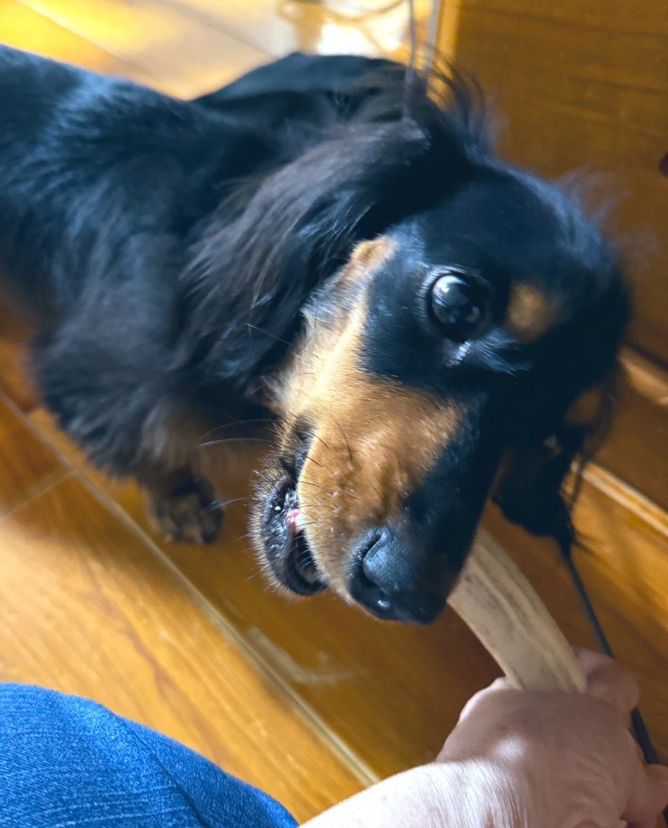 Weverseの方で慎吾くんに一生懸命コメント書いてる間にいつの間にかワンコに鹿の角を握らされてたんだけど全く記憶が無い😂噛みやすい角度で持つようにいつも手を押さえられて催促されるんだけど無意識で握ってたみたいwww #ぷっくりニュース pic.x.com/emohOIxtJV