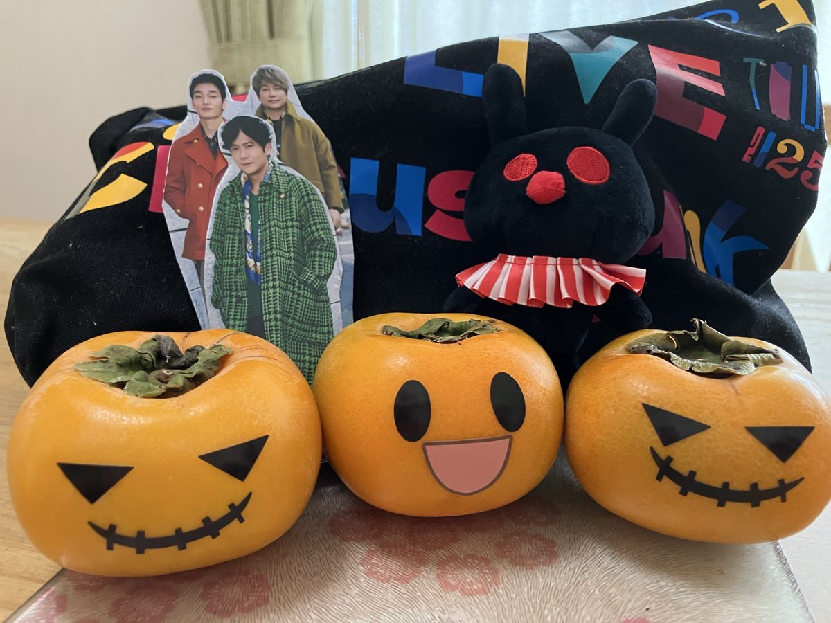 もうすぐハロウィン🎃 柿で ハロウィン 飾ってみました🤭 吾郎さん つよぽん 慎吾ちゃん クロうさも参加させて、、、😍 柿でも かわいい😊 #ぷっくりニュース #新しい地図 #ハロウィン pic.x.com/DToToOmQV4