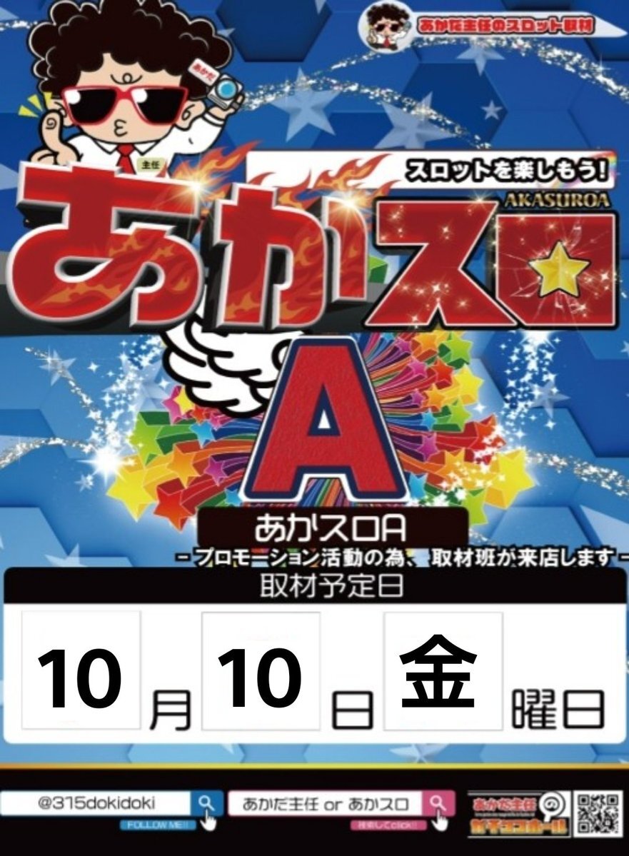 明日1️⃣0️⃣月2️⃣0️⃣日🈷️曜日は朝1️⃣0️⃣時開店💙❤️ 明日は #ほたる さん実践来店予定🐱🦈 @hotaru0426 ◀◁◀ほたるさん𝑿 そして、 #ジャグラー & #海物語 景品入荷です❤️💙 【今週のおすすめ機種】 ✅スマスロ、スマパチ #東京喰種 ✅海物語シリーズ ✅ジャグラーシリーズ ご来店お待ちしております😍