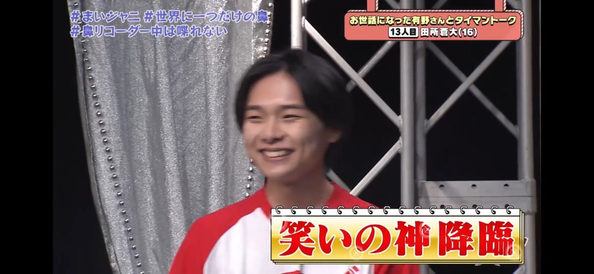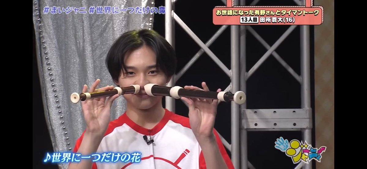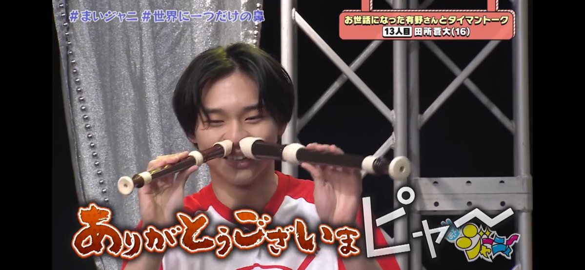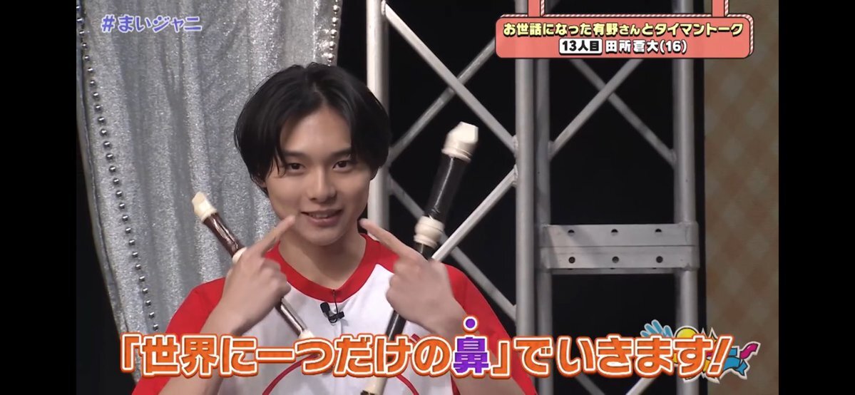 #まいジャニ #世界に一つだけの鼻 #鼻リコーダー中は喋れない バスケ上手なたどちゃんのためにバスケコーナー残してくれた有野さんありがとうございます😭 真弓くんに「田所さん感謝の言葉ですよ」って言われてちょっとニヤけるたどちゃん可愛かった^^ 鼻リコーダーの更なる進化に期待✨