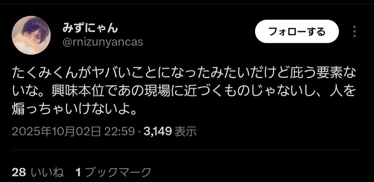 立花孝志系過疎配信者(しばき隊) 「みずにゃん」こと「濱薗優季」氏 ツイキャス配信者たくみ 逮捕の件、仲間のしばき隊を擁護。 @mizunyannyan @rnizunyancas @aousagi_asa @ZeroBase_com #みずにゃん #未成年淫行 #社会の敵 #非課税世帯疑惑 #子捨て #佐々木蘭 #うんこ臭い #長原 #ビバリー pic.x.com/XW8X5D86le