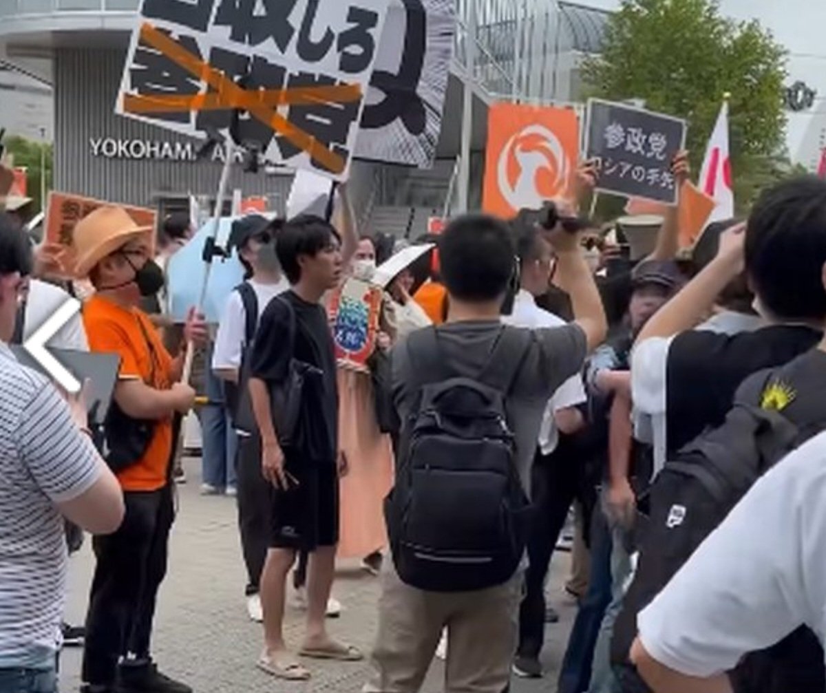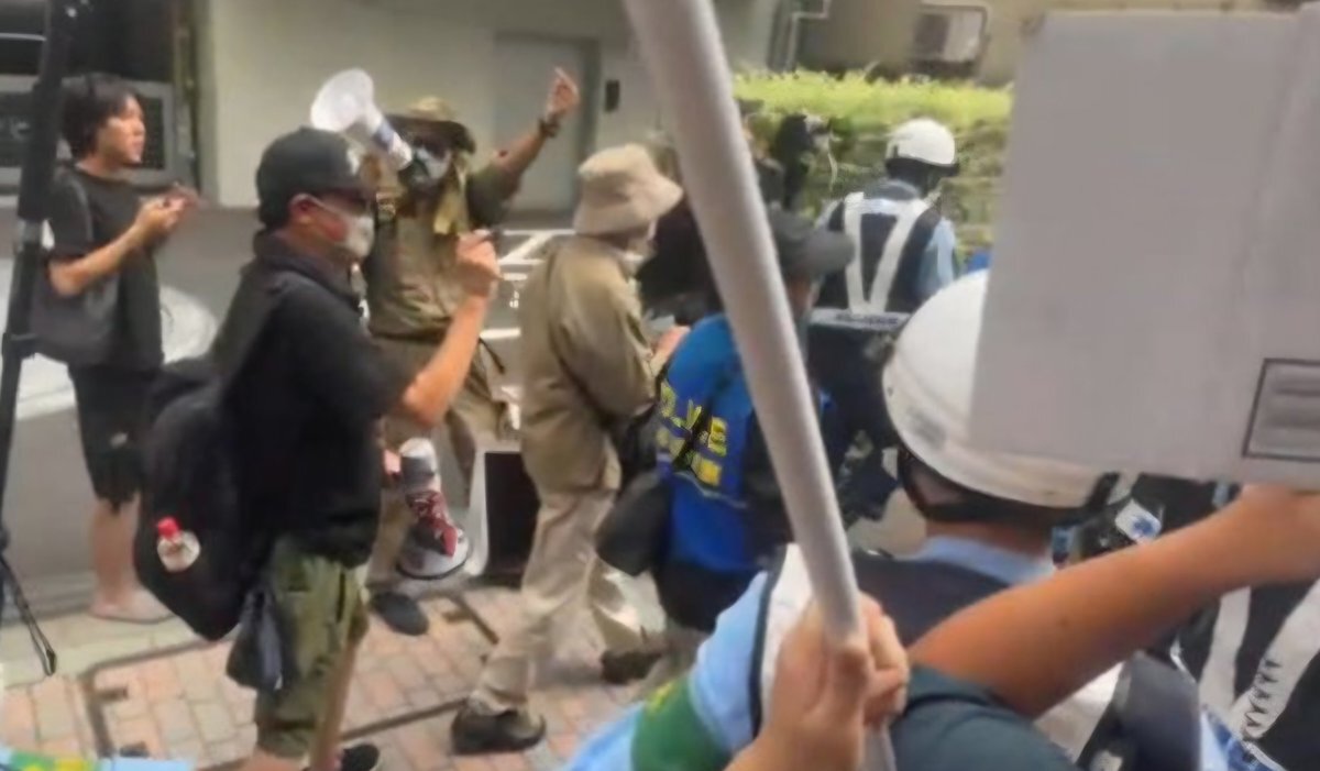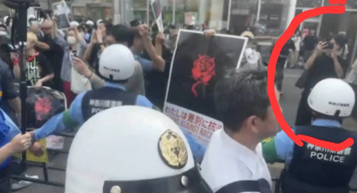 しばき隊しか入れないエリアで活動しヤジや撮影を行う、「みずにゃん」ことしばき隊「濱薗優季」氏 #しばき隊 #川口ヘイトデモ #みずにゃん pic.x.com/paQOyoBFJz