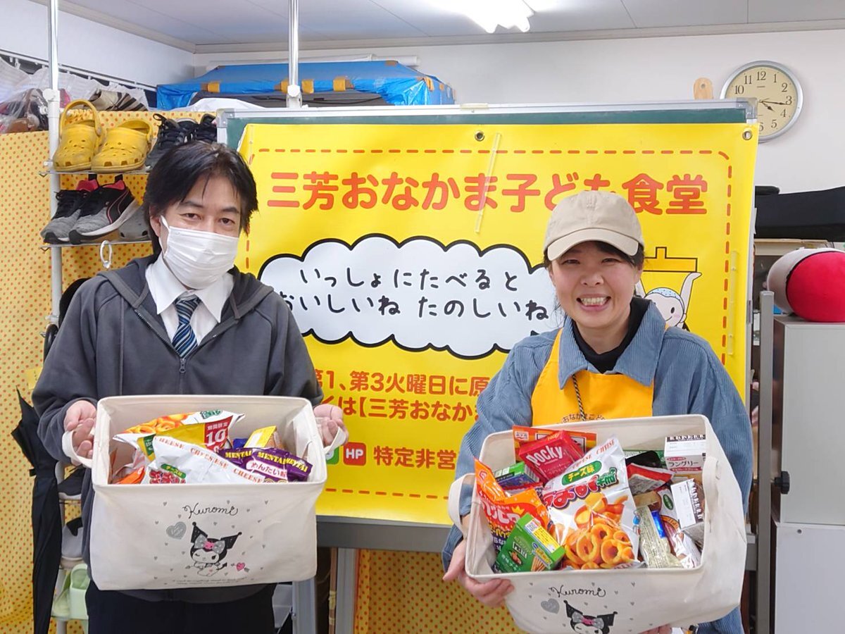 こんばんは🥰 皆さまからいただきました「お気持ち」を 三芳おなかま子ども食堂さまに届けてまいりました🤗 いつも本当にありがとうございます🥰 今後ともよろしくお願いいたします😊 お二人とも良いスマイルです😍 #子ども食堂 #みずほ台 #感謝 pic.x.com/LCxXf8UdRR
