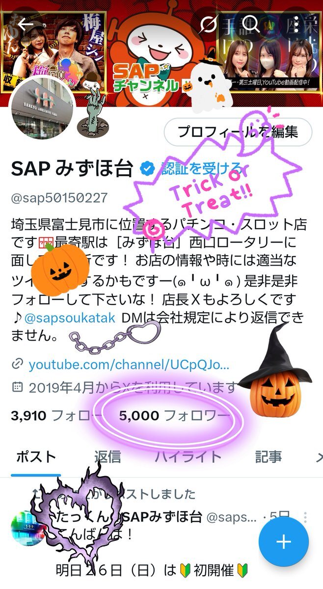 ハッピーハロウィン🤗 なんと!フォロワー様が5⃣0⃣0⃣0⃣名様に😍 皆さま本当にありがとうございます🫡 今後ともよろしくお願いいたします🤠 目指せ1⃣0⃣0⃣0⃣0⃣名様😤 明日から1⃣1⃣月突入です😇 1⃣1⃣月もSAPみずほ台店にお越し下さいませ😁👍 #感謝 #みずほ台 #11月 pic.x.com/H2RJQwABOT