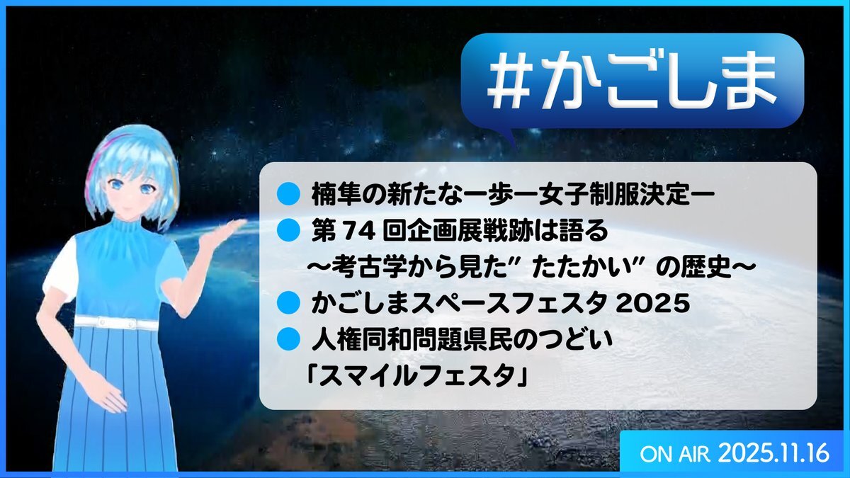 📺#MBCテレビ このあと1時25分『#かごしま』🈞 🗨鹿児島県からのお知らせを毎週お送りします。 県内各地の行事やイベントなど、さまざまな鹿児島の動きをお伝えします。 #みなみ mbc.co.jp/tv/hushtug/