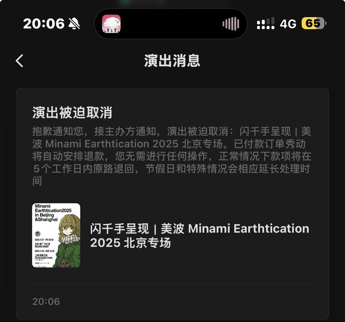 八月に北京公演のチケットを買いました。それが、明日公演なのに、今日公演がキャンセルされたと知らされました…政治について何も言えませんが、本当に悲しいです。 #みなみ #美波 pic.x.com/bPfqD3Pefi