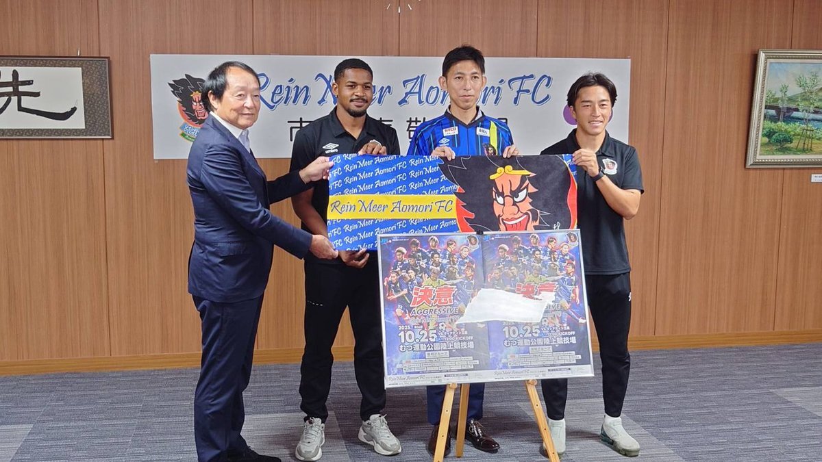 【実施報告】 9/30(火) 、榊美樹社長、#髙木輝之 選手、#ベッサ 選手が、むつ市長 山本 知也様を表敬訪問いたしましたのでご報告いたします。 いよいよ今週土曜日は、今季初 #むつ市 開催試合⚽️ たくさんのご来場お待ちしております! 🔗reinmeer-aomori.jp/post-38343/ #ラインメール青森 pic.x.com/EsOA6qAu4H